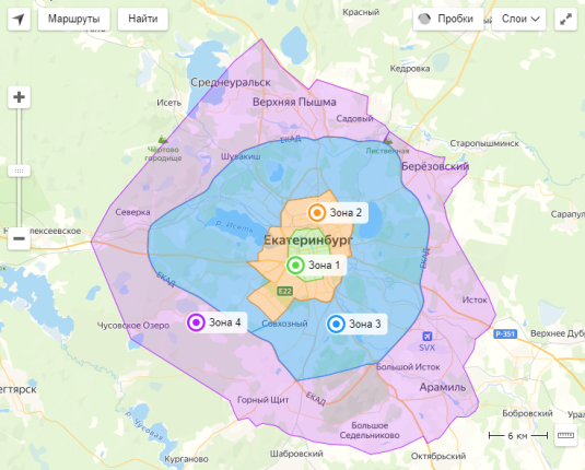 Зона 4 (от 1700 руб. 35 руб/км считается в обе стороны)